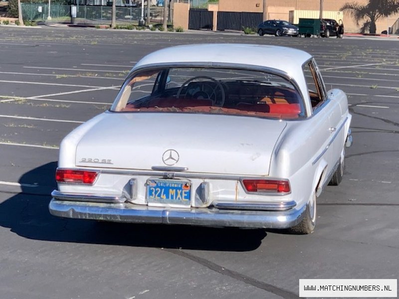 De prijs is inclusief 21% BTW. Bij zakelijke aanschaf binnen de EU kan de BTW worden teruggevraagd! - Zojuist ontdekt in een garage in de buurt van San Diego/Californië: een zeer originele Mercedes-Benz 220 SE Coupé uit 1963 - Een originele Californische auto, vanaf nieuw, wat bewezen kan worden door de originele blauw-gele Californische kentekenplaten - Zeer fraaie kleurencombinatie van Papyrus Weiss met een rood interieur - De auto beschikt over de juiste opties zoals een originele Becker-radio, airconditioning en een af fabriek gemonteerd schuifdak - Deze Mercedes heeft meer dan 30 jaar in een garage gestaan, dus heeft werk nodig - De motor draait met de hand en zit niet vast - Een mooie en onverprutste 220SE Coupe met een goede basis die het waard is om te restaureren! - Deze auto komt binnenkort binnen - Neem contact met ons op voor meer informatie of als u een reservering wilt maken