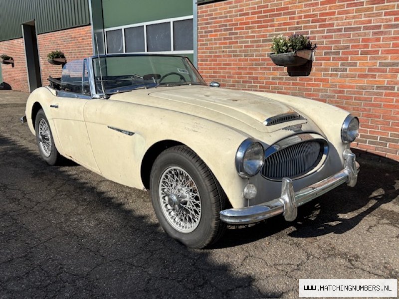 Der Preis enthält 21 % Mehrwertsteuer. Bei gewerblichen Einkäufen innerhalb der EU kann die Mehrwertsteuer zurückgefordert werden! - Ein originaler Austin Healey 3000 MKIII von 1966 - Ein gut laufender und fahrender Big Healey, der Aufmerksamkeit gebrauchen könnte - In der Originalfarbe Elfenbeinweiß - Der BJ8 wird von vielen als das begehrteste der Austin-Healey 3000-Modelle angesehen, wegen des leistungsstarken Reihen-6-Zylinder-Motors mit 150 PS, einem Armaturenbrett aus Walnussfurnier, einer Mittelkonsole und Kurbelfenstern - Dieses Auto hat sogar noch den begehrten und optionalen Overdrive Ab Werk und schöne Speichenräder! - Hat den richtigen und wahrscheinlich passenden Motor (Motorcode 29K) - Ein originales kalifornischem Blue Plate Healey der immer in Kalifornien war - Kein überrestauriertes Auto, sondern ein ehrliches, originales Auto mit Patina und der richtigen Ausstattung! - Dieser Austin Healey ist in unserem showroom in Holland und Steuer und EU Importgebuhren sind schon bezahlt worden - USA Import; alle Dokumente fur einen EU Kennzeichen sind dabei - Besichtigung nur nach Vereinbarung - Lieferung von dem Wagen ist moglich