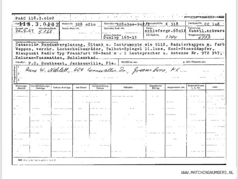 Der Preis enthält 21 % Mehrwertsteuer. Bei gewerblichen Einkäufen innerhalb der EU kann die Mehrwertsteuer zurückgefordert werden! - Wie schon so oft in der Vergangenheit wurde auch dieser klassische Porsche 911 von 1968 mahl umgebaut und verbreitet - Unter der Haube verbirgt sich jedoch ein originaler und früher Porsche 911 2.0 mit kurzem Radstand von 1968 - Er verfügt noch immer über den originalen, Matching 2,0-Liter-Aluminium-Motor und den originalen und Matching 5-Gang-Schaltgetriebe - Der Motor dreht frei mit dem Hand und ist nicht fest - Die Innenausstattung ist, mit Ausnahme der Sitze, noch original - Er war einst rot lackiert, die Originalfarbe ist jedoch das seltene und beliebte Schiefergrau (Farbcode 6801B) - Ausgestattet mit einem originalen BBS Mahle Breitfelgensatz - Ein solides Projekt-Porsche aus Kalifornien mit viel Potenzial! - Der Kardex ist vorhanden - Dieser Porsche ist in unserem showroom in Holland und Steuer und EU Importgebuhren sind schon bezahlt worden - USA Import; alle Dokumente fur einen EU Kennzeichen sind dabei - Besichtigung nur nach Vereinbarung - Lieferung von dem Wagen ist moglich