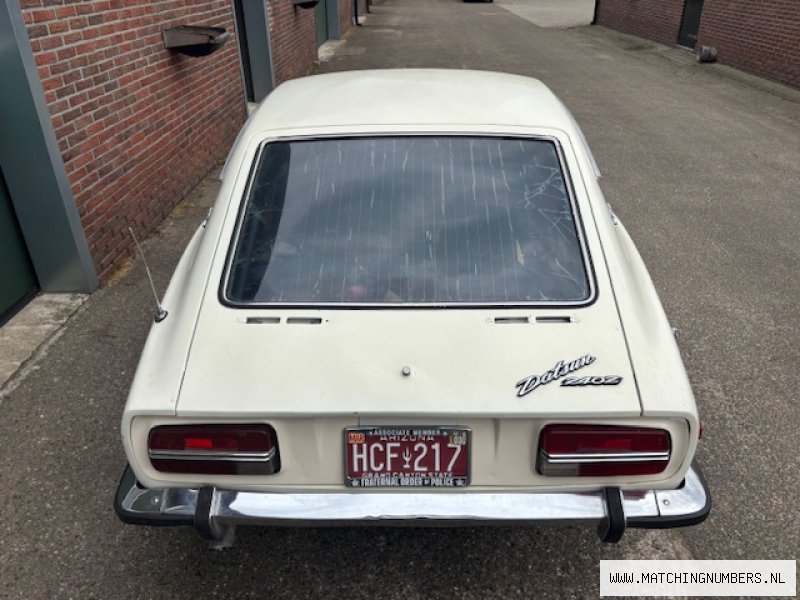 De prijs is inclusief 21% BTW. Bij zakelijke aanschaf binnen de EU kan de BTW worden teruggevraagd! - Zeer vroege Datsun 240Z Coupe Series 1 uit 1970 met werk - Geproduceerd 2/70 en titled 1970 - Alle originele Series 1 kenmerken zijn nog aanwezig - Originele L24 motor; motor loopt - In de originele kleur Kilimanjaro White - Origineel handgeschakeld - Zeer solide en roestvrije auto met originele vloeren en nog nooit aan gelast! - Zeer zeldzaam; zulke autos zijn in deze roestvrije staat niet meer te vinden! - Recent ontdekt in een betonnen garage in Phoenix - Arizona waar de auto sinds 2003 opgeslagen stond - Deze Datsun staat op voorraad in onze showroom in Nederland en alle EU invoerrechten en BTW zijn reeds betaald - USA import; alle documenten voor het verkrijgen van een Europees kenteken zijn aanwezig - Bezichtiging alleen op afspraak - Levering van de auto is mogelijk