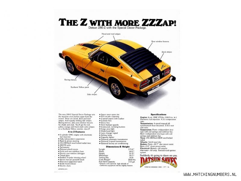1977 - Datsun 280Z Coupe Sunburst Yellow 5 Speed